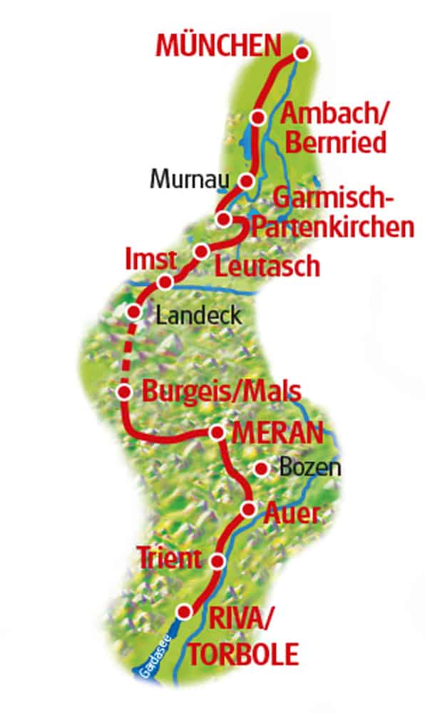 Denna vackra transalpina cykelresa från München till Gardasjön låter dig korsa de mäktiga Alperna på cykel.
