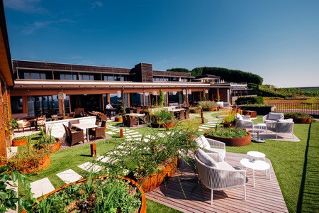 Genusshotel betyder hotell för livsnjutare och passar bra eftersom detta moderna gourmethotell är känt för god mat, fina viner och vyerna från det perfekta läget.
