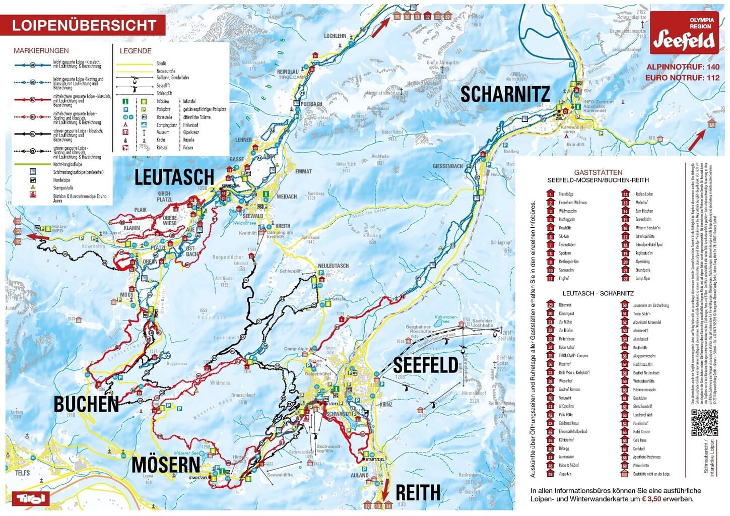 Se den interaktiva spårkartan på Seefeld.com. Källa: Olympiaregion Seefeld.