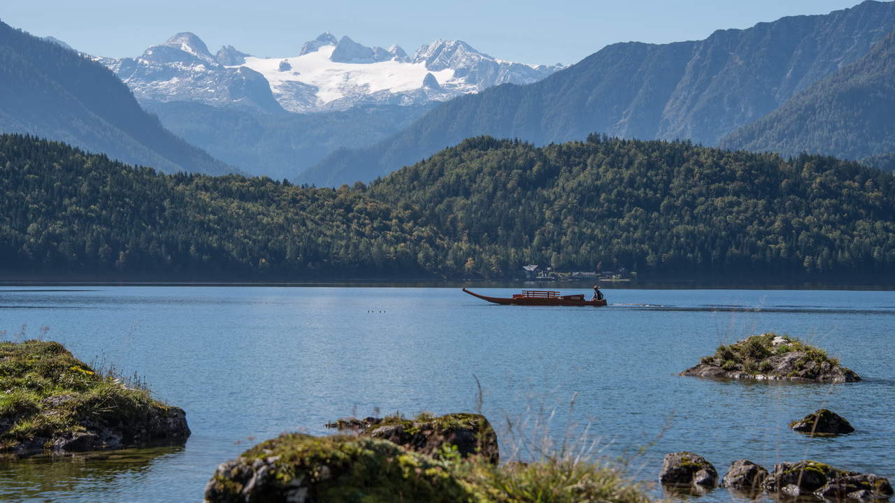 Dachstein (2.996 m) är det högsta berget i Salzkammergut och dominerar omgivningen fullständigt. Toppen är omgiven av glaciärer.